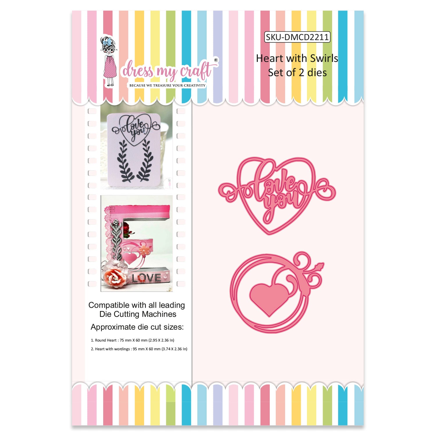 2. Heart with wordings: 95 mm X 60 mm (3.74 X 2.36 In)